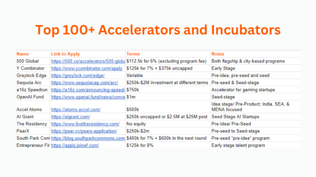 Accelerators are a great way to get your startup idea off the ground. They provide mentorship, guidance, funding, and much more. However, with thousands of programs available, finding the right one is time-consuming.